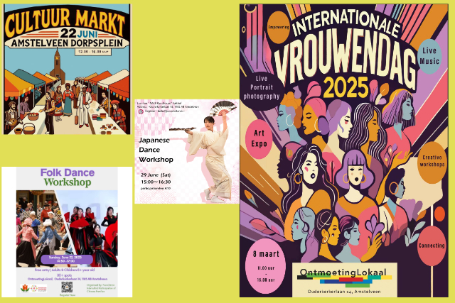 多国籍な人々が暮らすアムステルフェーン市で行われる国際交流イベントに積極的に参加しています。自らイベントを主催するほか、Ontmoetingのイベントや親交のある中国人団体IPCFのイベント告知をサポートをするなど、ネットワークづくりにも取り組んでいます。市が主催する「桜祭り」や「Connect@」などにもご招待いただき、与えられた機会を活かして日本とオランダ社会とのつながりを深める活動を続けています。